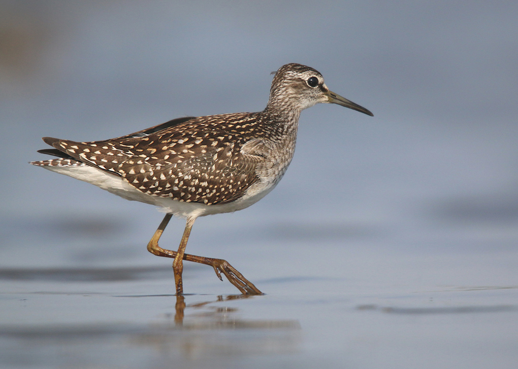 Een hoog trillend piepje kondigt de komst aan van een andere ranke schoonheid. Het is een Bosruiter, een prachtige wader die in Nederland als broedvogel is verdwenen. Ze broeden in Scandinavië en Rusland. De vogel overwintert in Afrika en doet tijdens de trek ook onze Nederland drasplassen aan, waaronder eentje op de plek waar ik vandaag precies zit. Een gelukje !