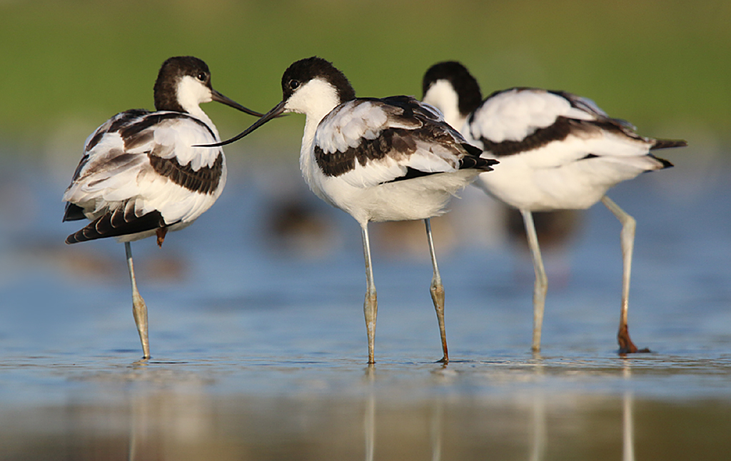 Een stuk verderop staan een paar Kluten, als mopperende mannetjes met de rug naar me te toe te delibereren. Da’s jammer op zich, want een aangezichts-foto is altijd fraaier, maar dit geeft toch ook wel de indruk weer van sierlijke vogels die feitelijk een ontspannen indruk maken.