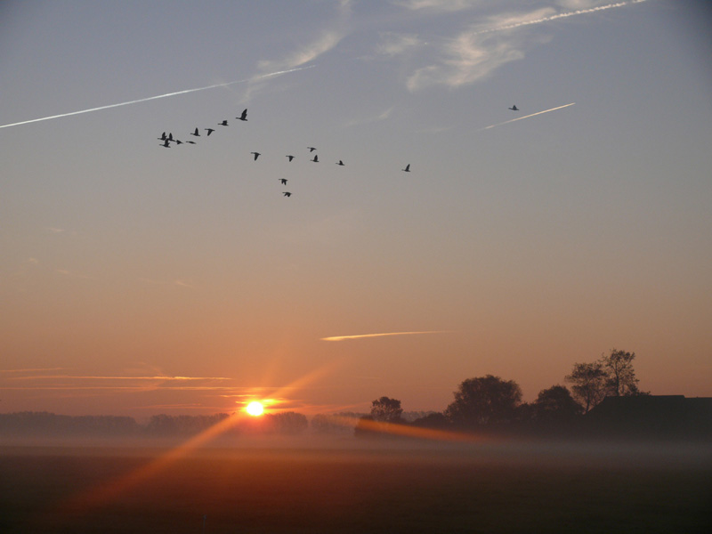 Vroeger, tot aan de jaren tachtig, zag je bij ons wel eens ganzen overvliegen. Grote koppels die in de bekende V-vormen overtrokken naar verderop in Nederland gelegen gebieden zoals de noordoostpolders en de grote meren. Hier in het Groningerland kwamen ze niet of zelden aan de grond.