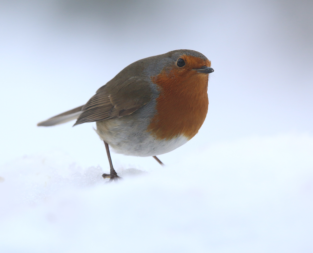 Als er tot slot nog een schielijke roodborst ook zijn restje graan meepikt, leg ik deze ook nog even vast..