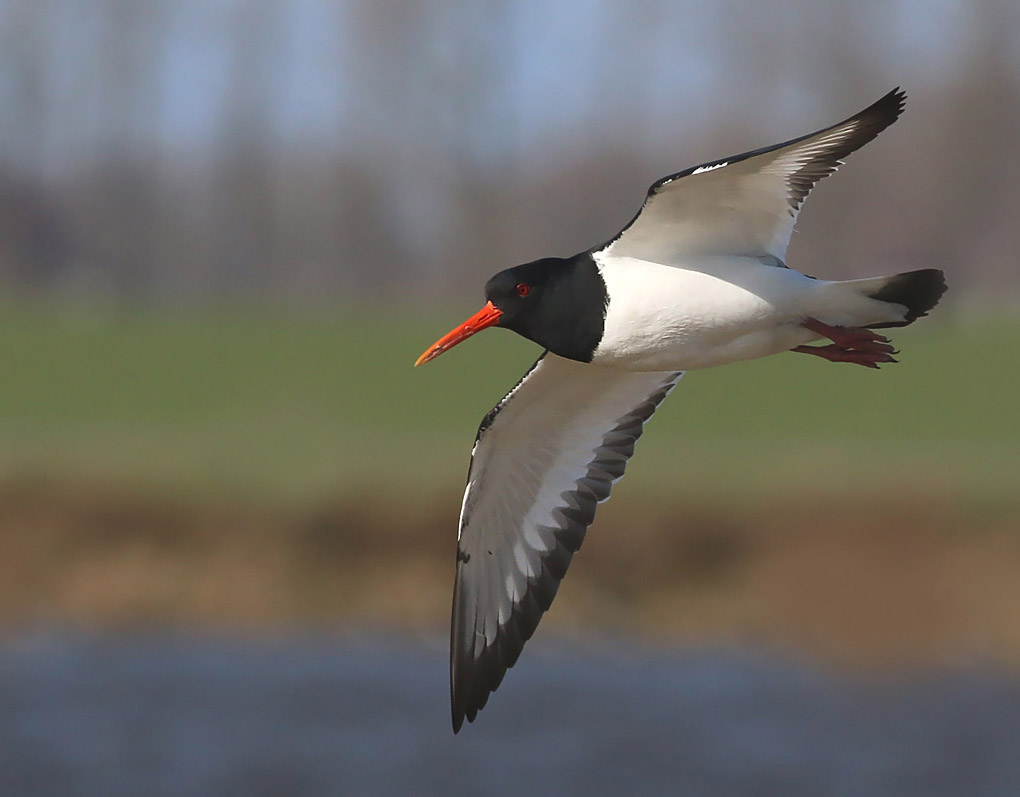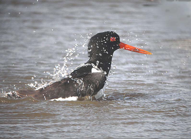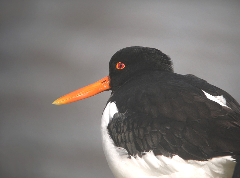 Allereerst maar eens een close-up, waarbij goed te zien is dat het oog van ‘Haematopus Ostralegus’ gewoon helderrrood is, iets wat we maar zelden zien bij vogelsoorten.