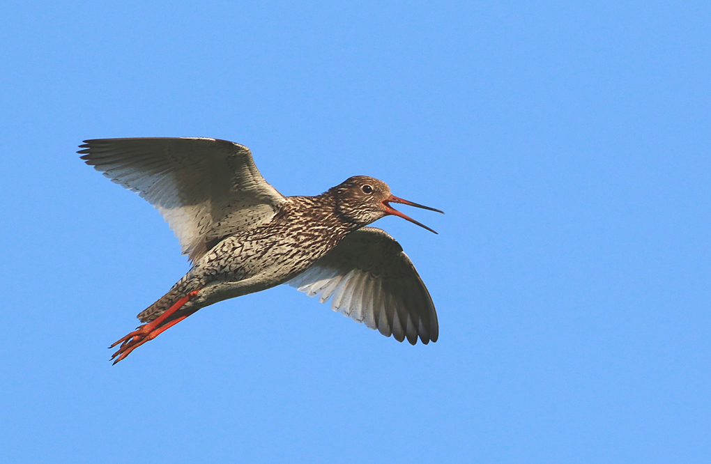 Vorige week kwam er op de Meedenerweg in de buurt van Wittewierum een Tureluur gealarmeerd enkele rondjes boven mijn hoofd vliegen. Omdat het avondlicht er mooi opviel en de vogel zich luid roepend, zo fraai aan me presenteerde, kon ik het uiteraard niet laten om de camera in te zetten om dit vliegbeeld vast te leggen. Door het opgewonden gedrag was het me als snel duidelijk dat er kuikens in de buurt waren.