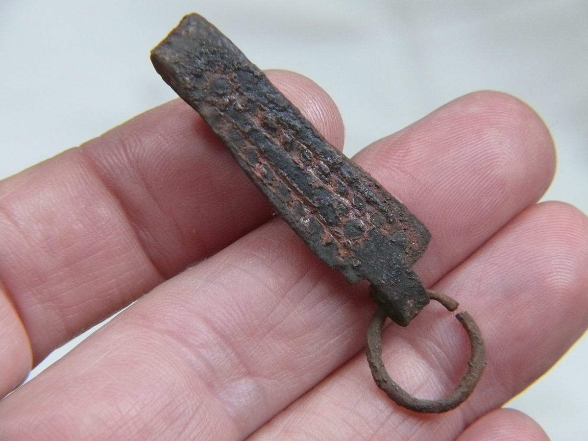 Het is een 16e-17e eeuwse riemhangertje, dat ik een jaartje geleden heb gevonden in de buurt van Loppersum.