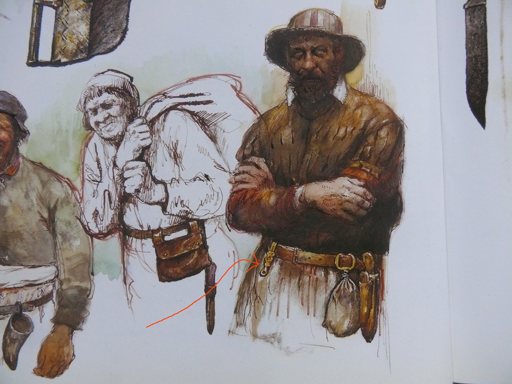 Omdat mensen in die vroege tijd geen broekzakken hadden om hun spulletjes onder het lopen tijdelijk in op te bergen hing men kleine gebruiksvoorwerpen zoals messen, sleutels, pijpenwroeters etc. allemaal aan de riem.