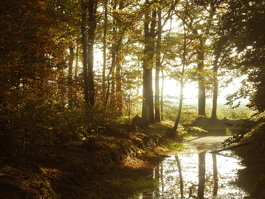 Was het bijvoorbeeld in het Slochterbos tot voor kort nog een ingetogen herfst-gebeuren, met veel groenachtig geel en geelachtig groen nu gooit het park alle schroom van zich af en baadt zich ongegeneerd in fonkelend bladgoud..