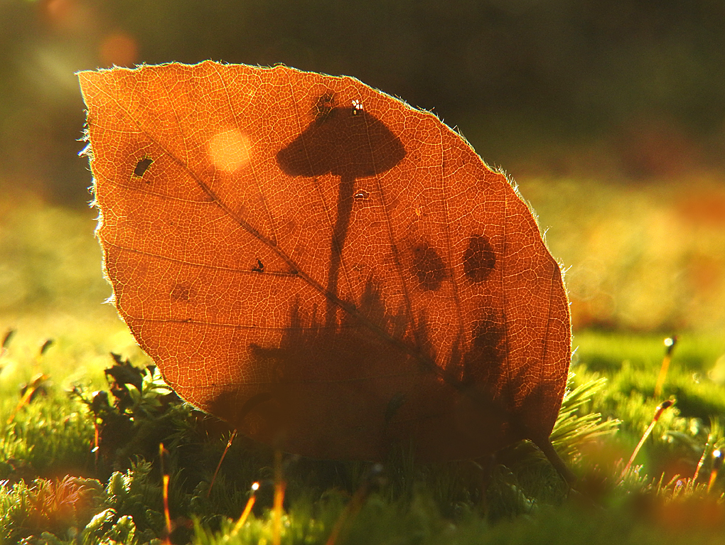 Maar omdat het tegenlicht er zo fijn op viel en omdat dat ene beukenblaadje er net naast lag en ik zo vrij was om die er héél even op z’n kant tegen aan te zetten..stond ie toch even in de ‘spotlights..’