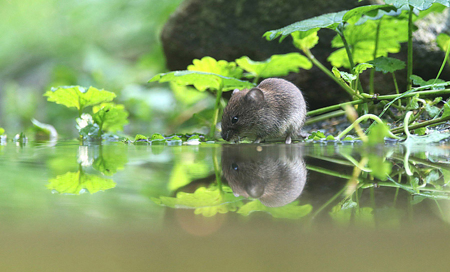 Soms is het een nauwelijks waarneembare beweging die de aandacht trekt, zoals die van een dorstige, kleine Woelmuis die ook eens even langs kwam voor een muizennnipje…