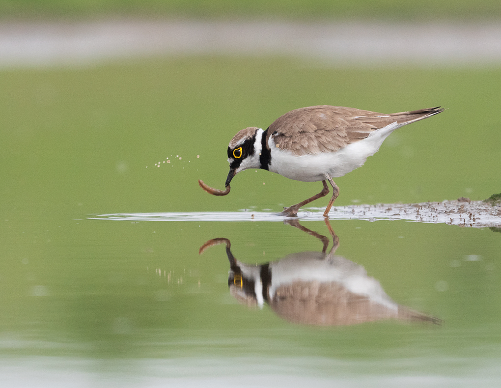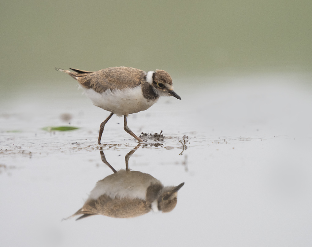 Dichterbij scharrelen een Kleine Plevier en de enige weken geleden uit het ei gekropen kuikens rond en daarmee heb ik me dan vooral te vermaken, want verder verschijnt er deze ochtend nauwelijks iets voor de lens.