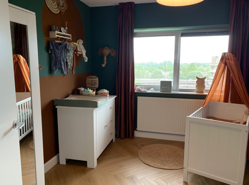 Het wiegje staat nu nog naast het kraambed maar Opa kan het niet laten en sluipt ook even naar het gereed gemaakte babykamertje waar het straks de nachten gaat doorbrengen. Zo’n kleine, met smaak en liefde ingerichte ruimte draagt in mijn beleving altijd een haast sacrale sfeer waarin je niet zomaar even binnen klost.