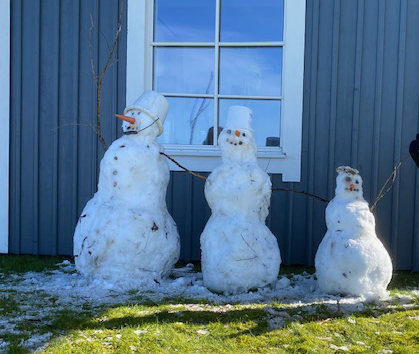 Het is dan wel weer leuk dat er gisteravond opnieuw een centimetertje of twee kleffe plaksneeuw viel waardoor er met de oudste van de twee kleine logees die we dit weekend over de vloer hebben nog nét drie ouderwetse sneeuwpoppen konden worden gecreëerd voorstellende een wat onthutst de wereld in ziende opa, een met haar kneedwerk kennelijk tevreden oma en een met het oog op het eindresultaat wat zuinigjes wegkijkende Luka.