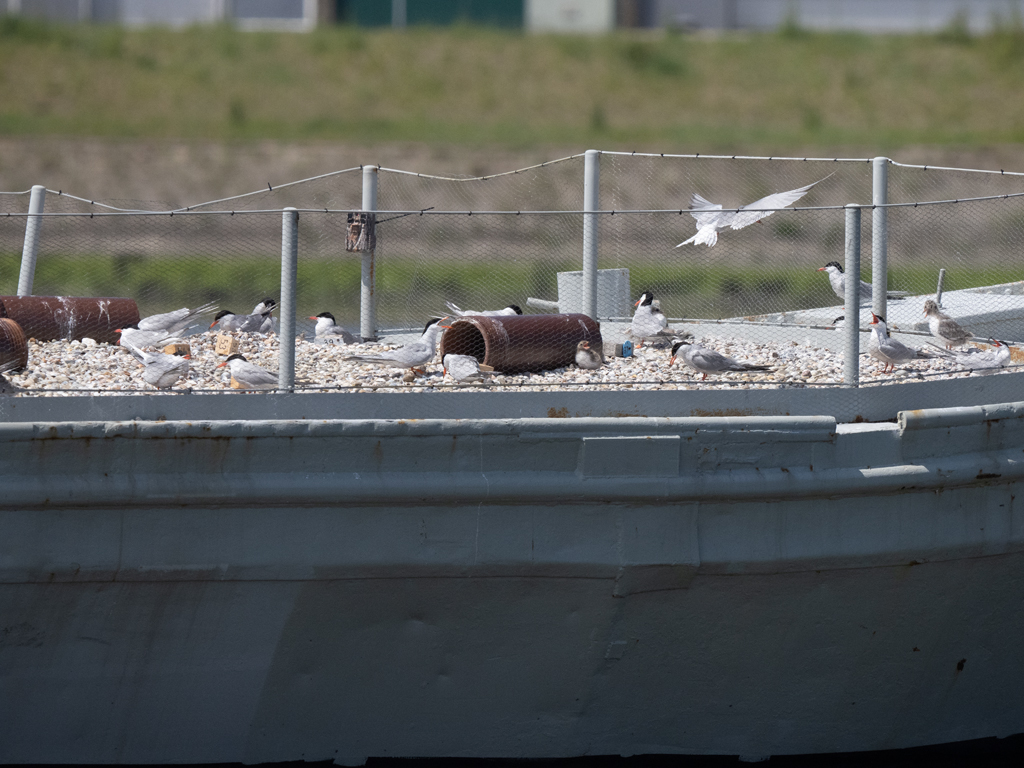 Tussen de middag zat ik vandaag een poosje in de buurt van het broedponton dat een paar jaar geleden in de haven van Lauwersoog is neergelegd. Vogels als de Noordse stern en de Visdief kunnen hierop veilig nesten te bouwen en eieren uitbroeden. Het is gemaakt van een oude dekschuit uit 1930, die uit de vaart is genomen en heeft de naam ‘Sternstee’ meegekregen.