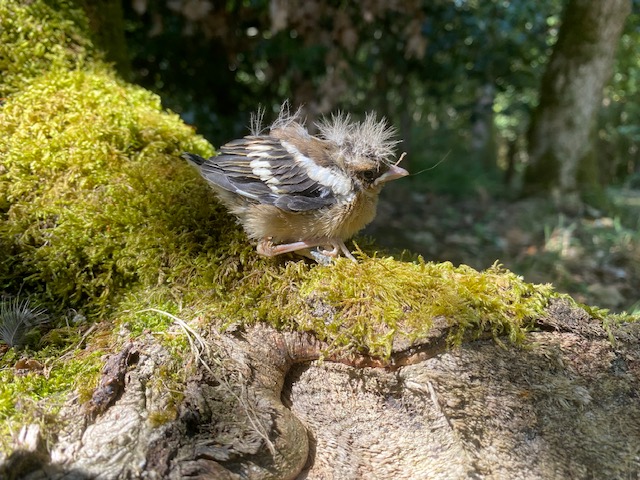 Verder was het dierenleven op de tweede camping wel heel dichtbij, bijvoorbeeld in de vorm van een te vroeg uit het nest gesprongen vink en een brood gappende koolmees.